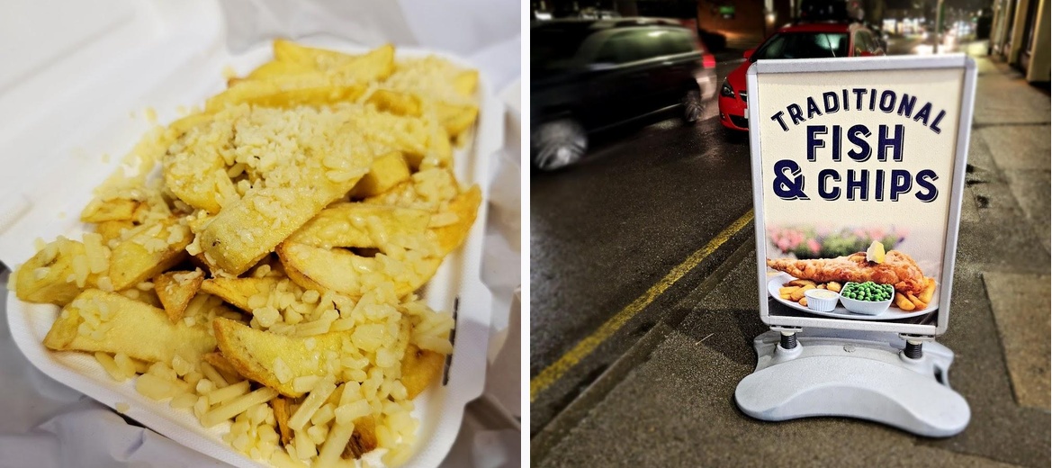 The vast menu caters to diverse tastes, featuring not only traditional fish and chips but also kebabs, burgers, and pies, ensuring everyone finds something to love.